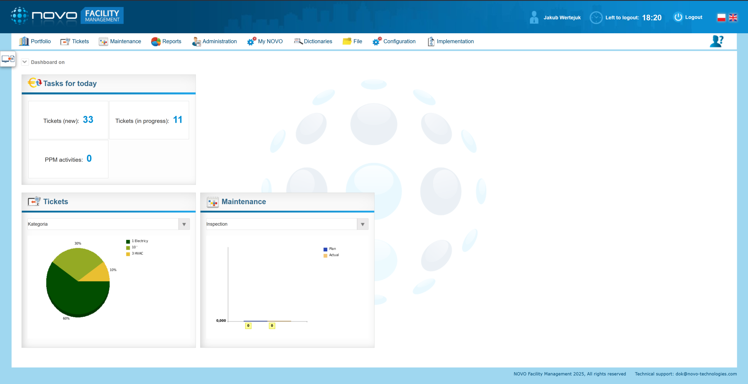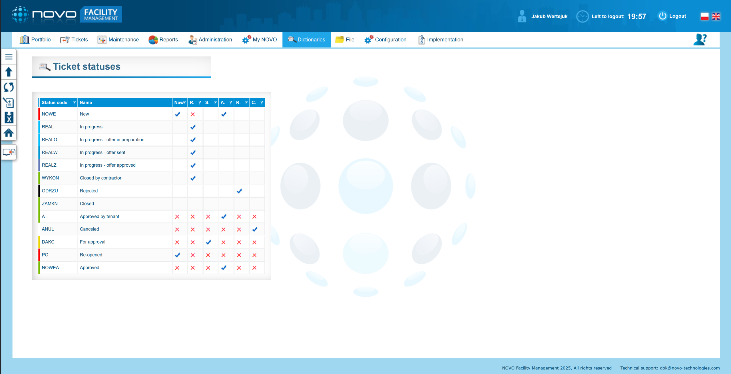 NOVO FM modulyje užklausų apdorojimas, stebėsena ir analizė yra itin efektyvūs. Paprastas užklausų pridėjimas, įskaitant galimybę siųsti jas el. paštu tiesiai į modulį, kartu su aiškiai apibrėžtomis spalvomis, pažangiais filtrais ir supaprastinto režimo peržiūra, ženkliai palengvina užregistruotų užklausų tipų, kategorijų ir prioritetų stebėseną bei analizę, ypač kai jos susijusios su technine infrastruktūra.